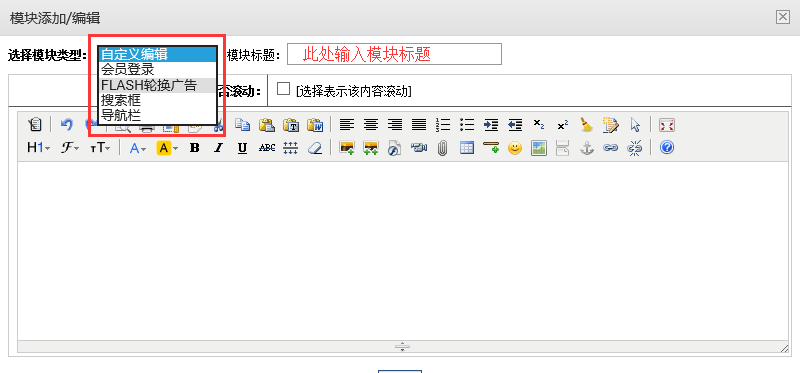 这里选择好模块的类型,设置好模块标题后点下边的提交按钮即可