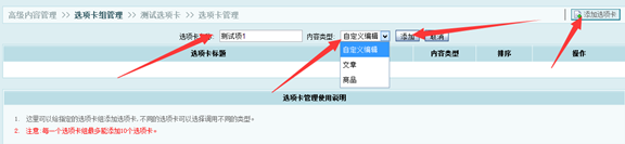 新版本的网站基本上的步骤相同,添加 调用 和修改整体显示的布局。下面我来说下选项卡的使用帮助: