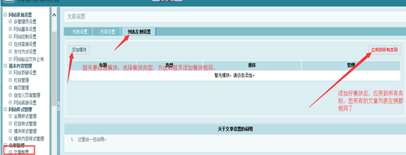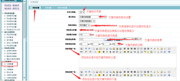 文章配置的作用:用来调整您网站所调用的所有文章左侧列表及文章的统一显示方式。