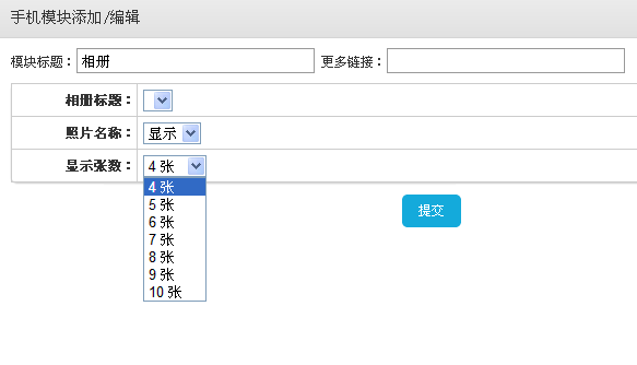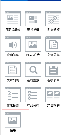 单击需要添加的模块类型,会弹出编辑页面 如图 相册(您在电脑上编辑好的相册 您在手机网站上调用就可以了